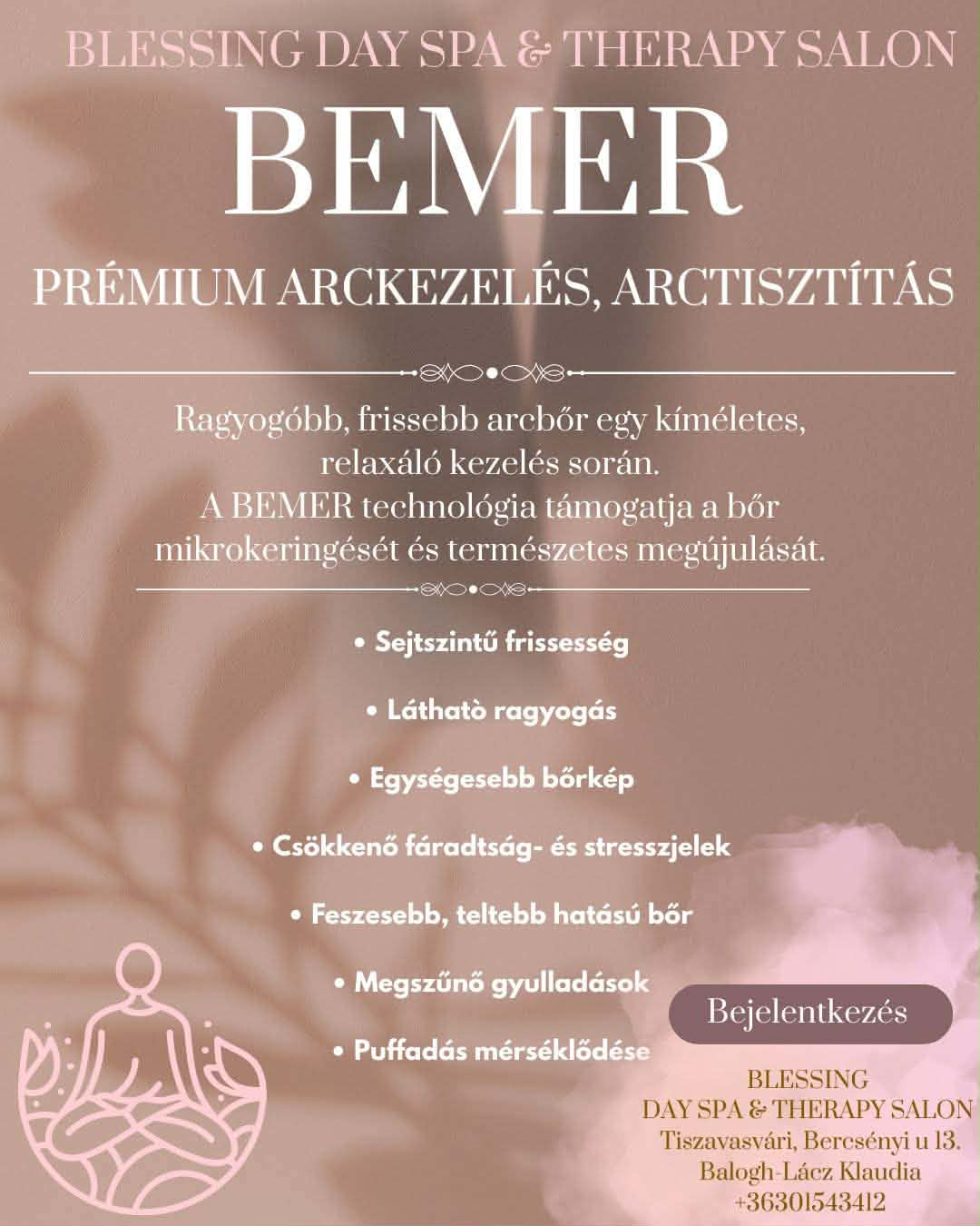 A Bemer kezelés egy olyan biofizikai alkalmazást jelent, ami a szervezet saját gyógyító erejét aktiválja. A testre továbbított egyedi impulzusa révén sokrétű pozitív hatást fejt ki a szervezet egészére. Az átfogó hatékonyságot a szervezetben elsősorban a Bemer jelnek a vér mikrokeringésre kifejtett hatása hozza létre.