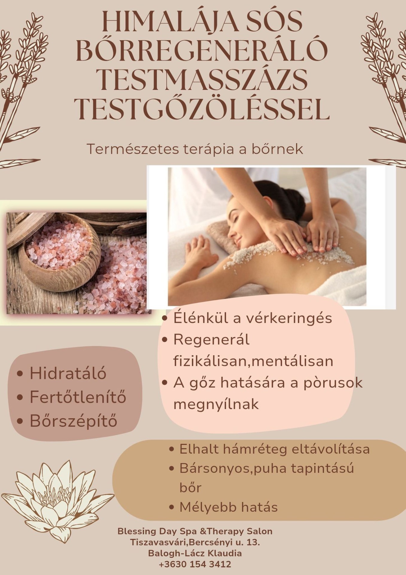 A himalájai sós bőrregeneráló masszázs egy olyan wellness eljárás, amely Himalája sókristályokat és olajokat, krémeket használ a bőr mélyreható tisztítására, a lerakódott elhalt hámsejtek eltávolítására és a bőr táplálására.